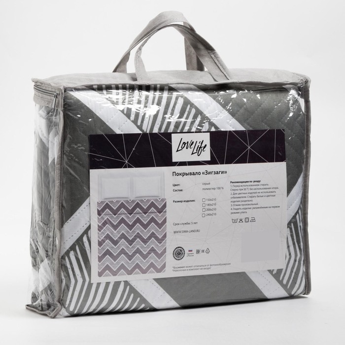 Покрывало LoveLife 2 сп "Зигзаги", цвет серый, 180х210±5см, микрофайбер, 100% п/э