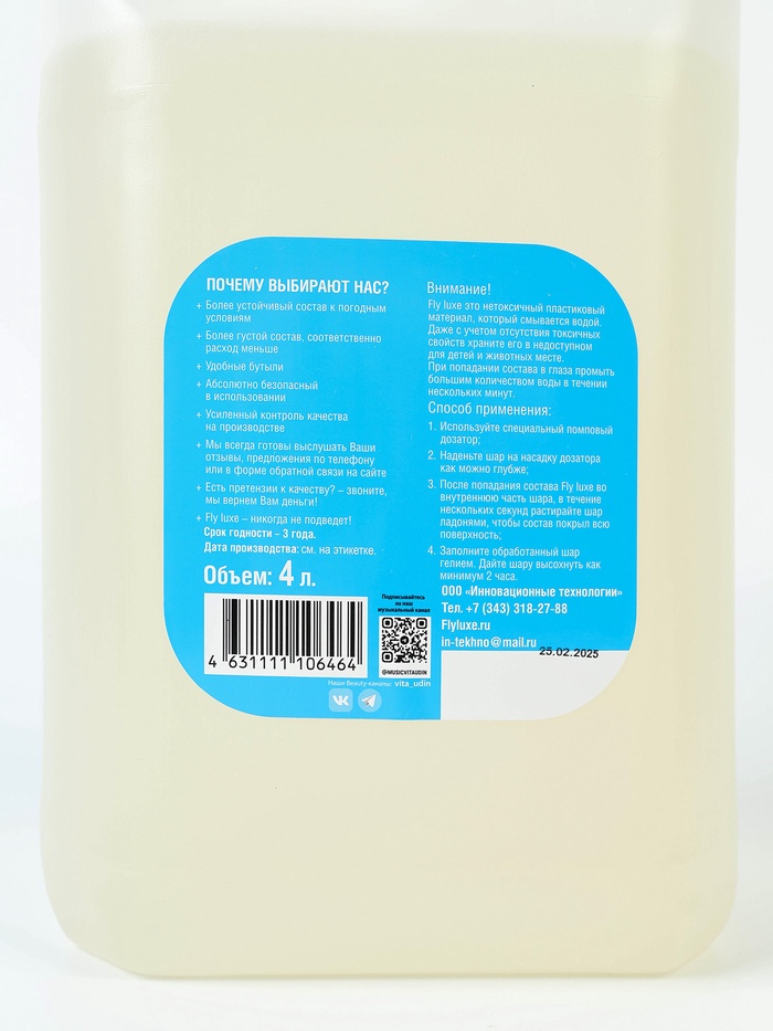 Способ применения: используйте специальный помповый дозатор. Наденьте шар на насадку дозатора как можно глубже. После попадания состава во внутреннюю часть шара, в течение нескольких секунд растирайте шар ладонями, чтобы состав покрыл всю поверхность. Заполните обработанный шар гелием. Дайте шару высохнуть как минимум 2 часа.
