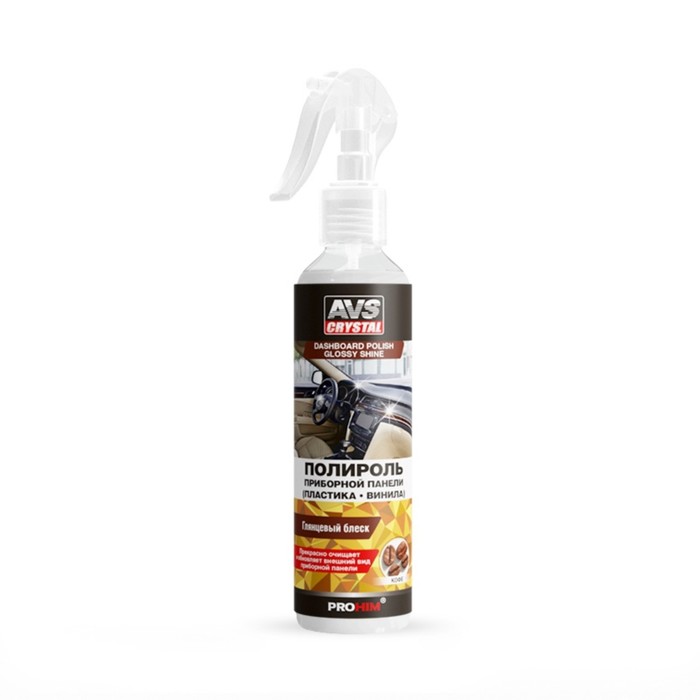 Полироль AVS для приборной панели с ароматом кофе - эффективное средство для комплексного ухода за пластиковыми, виниловыми и резиновыми элементами интерьера автомобиля. Глянцевая формула возвращает поверхностям насыщенный блеск, подчёркивает структуру материалов и обеспечивает долговременную защиту от пыли, выгорания и статического электричества. Удобный триггер-распылитель позволяет равномерно нанести средство на все участки панели, облегчая процесс уборки и ухода. Объём - 250 мл.
