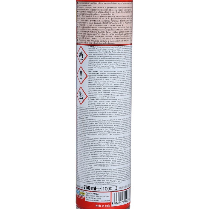 Полироль для пластика с ароматом вишни от Plak. Этот инновационный продукт, объемом 750 мл в удобной аэрозольной упаковке, станет настоящим спасением для интерьера вашего авто. Сделанный в Италии, этот полироль гарантирует не только качество и долговечность, но и безопасность использования благодаря тщательно подобранному составу.