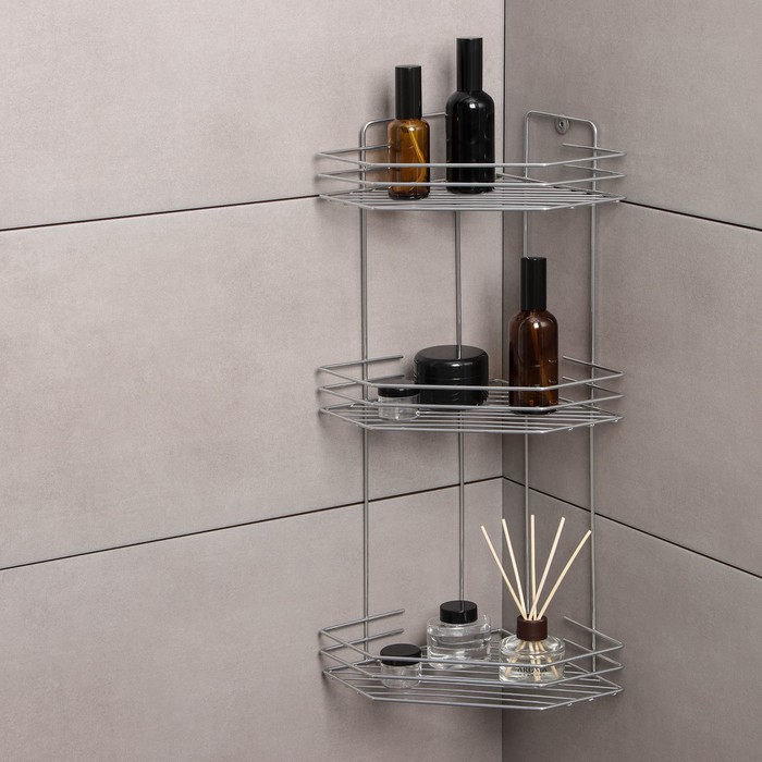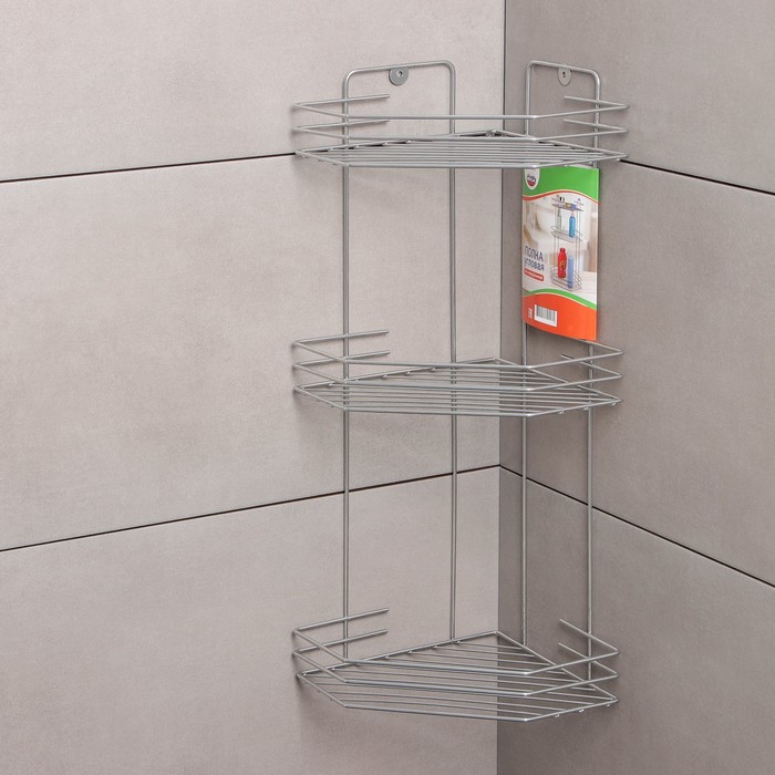 Угловая форма позволяет эффективно использовать пространство в ванной комнате. Изделие изготовлено из высокопрочного металлического материала с полимерным покрытием.