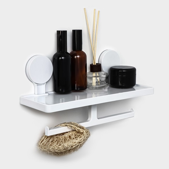 Полка имеет компактные размеры и эргономичную форму, что позволяет максимально эффективно использовать доступное пространство. На ней удобно размещаются различные предметы, такие как шампуни, гели для душа, зубные щётки и другие ванные принадлежности.