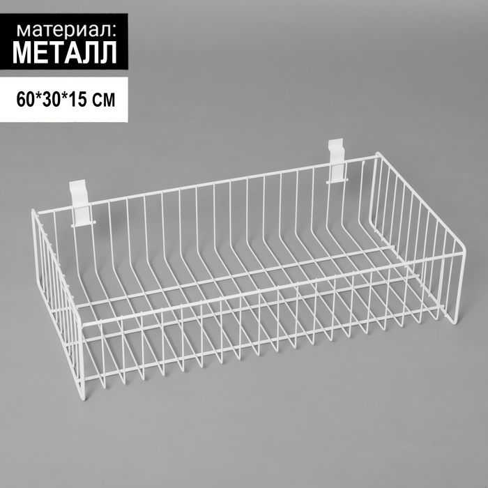 Полка-корзина для экономпанелей размером 60×30×15 см — практичное решение для хранения и презентации товаров в торговом зале.