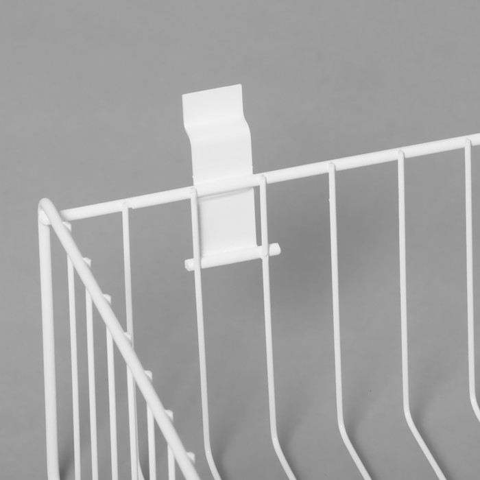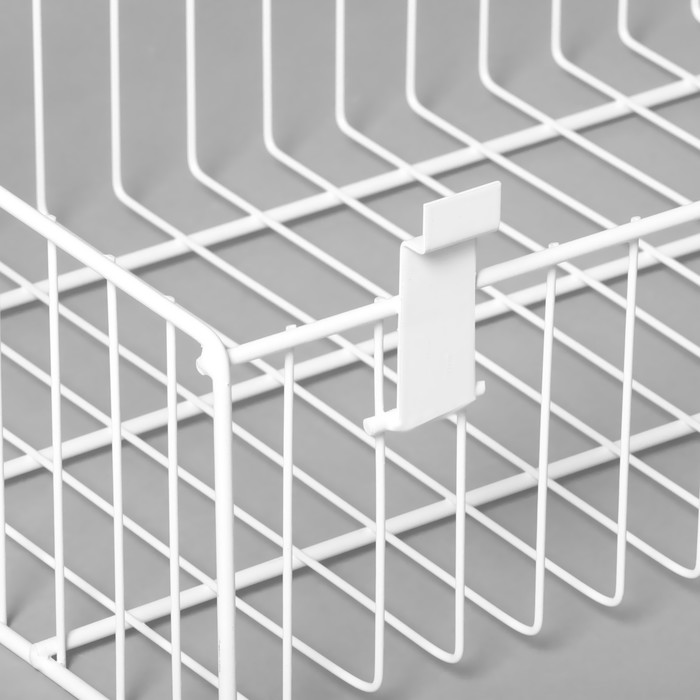 С её белым цветом, эта полка-корзина отлично вписывается в любой интерьер, создавая современный и аккуратный вид вашего магазина.