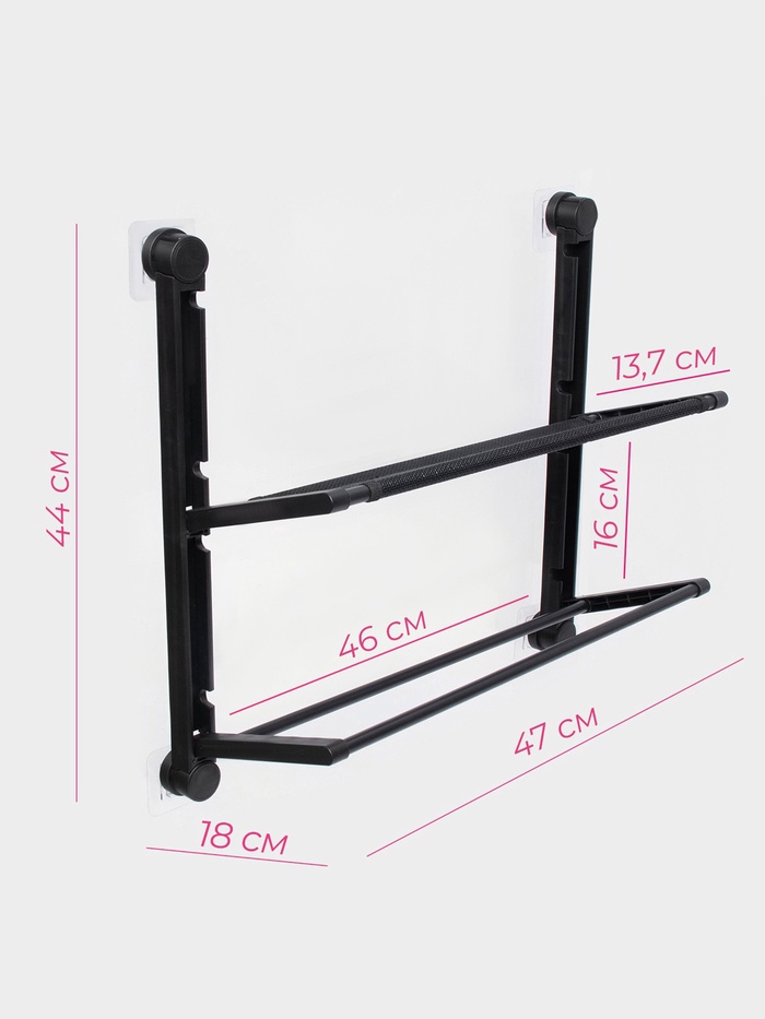 Преобразите свой быт с помощью настенной складной сушилки, которая станет незаменимым помощником в вашей домашней рутине. Эта изящная полка не только выполнена в стильном чёрном цвете, но и радует своей необычайной функциональностью.
