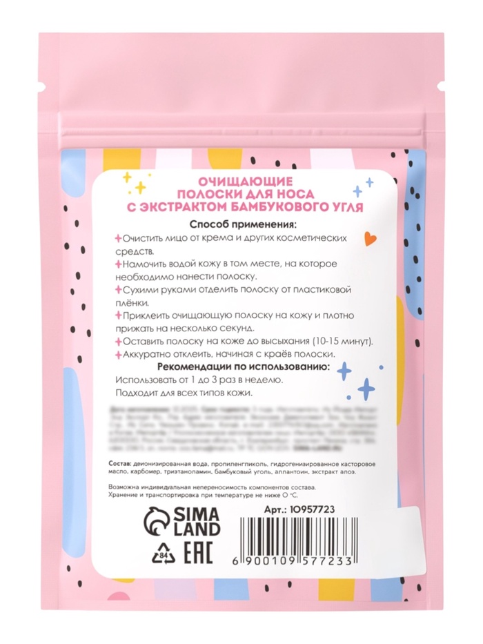 Полоски очищающие для носа с экстрактом бамбукового угля, набор 15 шт
