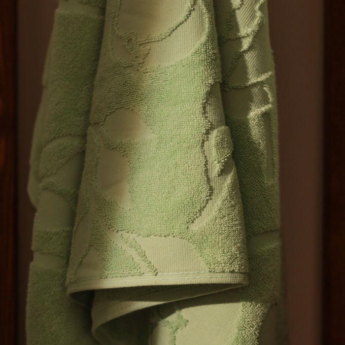Это махровое полотенце для ванной станет источником мягкого комфорта после душа. Плотный жаккардовый узор с цветочным рисунком создаёт приятную текстуру и делает его особым элементом в вашей домашней спа.