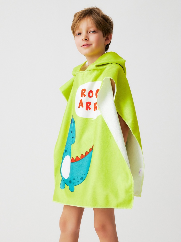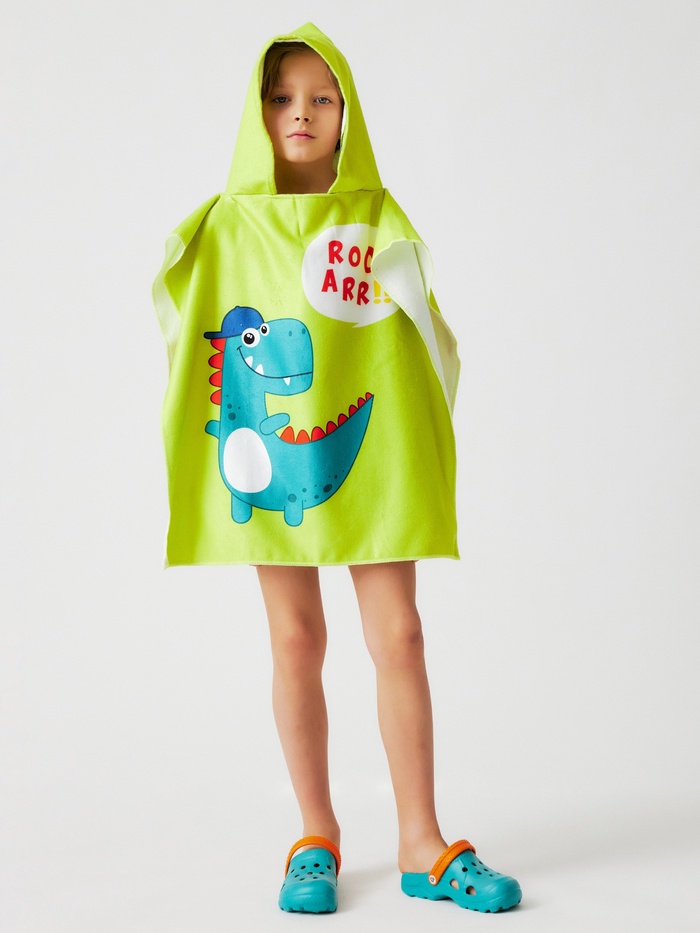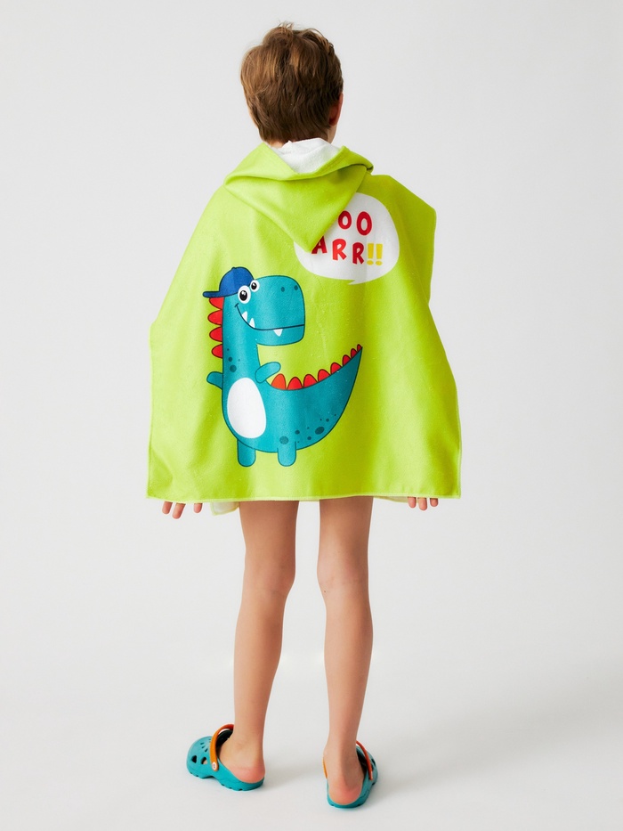 Полотенце - пончо детское махровое LoveLife «Дино» 60×120 см, зелёное