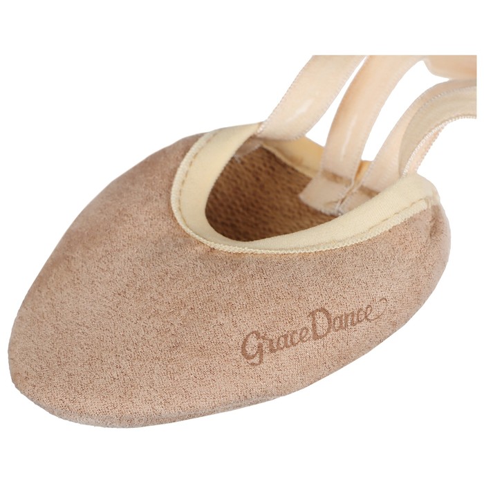 Мягкая и удобная обувь подходит для тренировок и выступлений по художественной гимнастике. Используя такую обувь можно добиться большей гибкости стопы, чем в обычных чешках. Они сделаны из прочных материалов, благодаря чему прослужат не один сезон. Держатся на стопе благодаря аккуратным резинкам. Наполовину открытая нога не скользит во время выполнения элементов. Полупальцы телесных оттенков практически незаметны во время выступления.