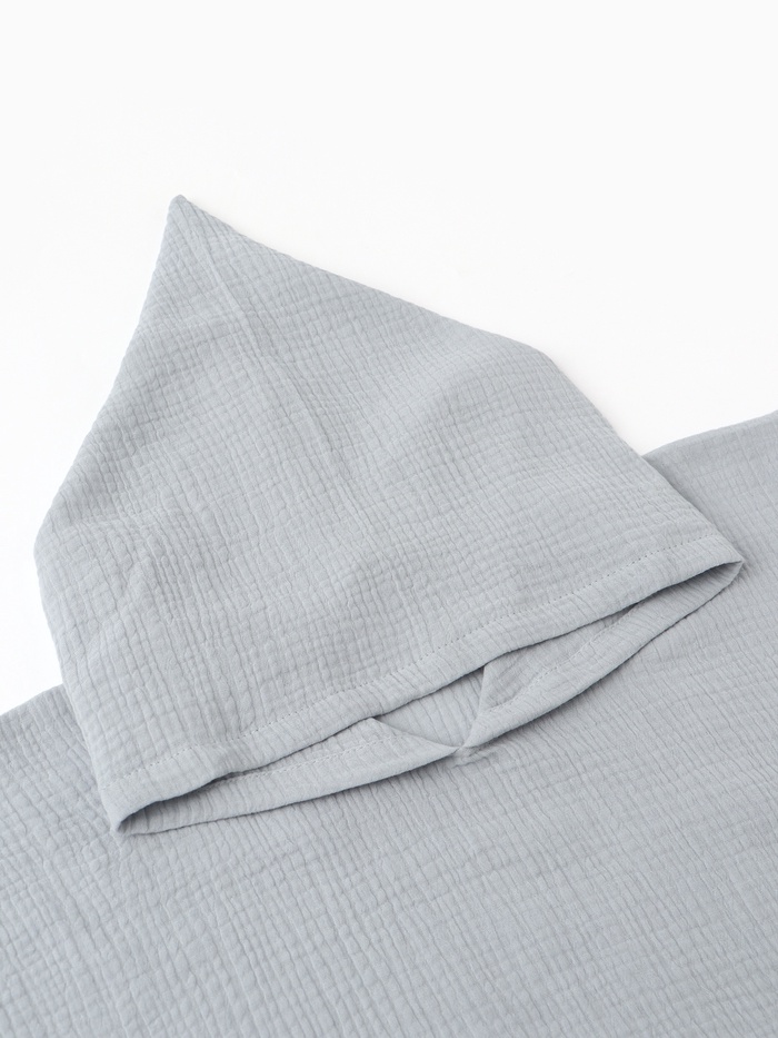 Лёгкое и уютное муслиновое пончо LoveLife — это идеальный аксессуар для вашего малыша. Его нежный серо-голубой цвет и мягкость делают его незаменимым для прогулок, сна или отдыха.