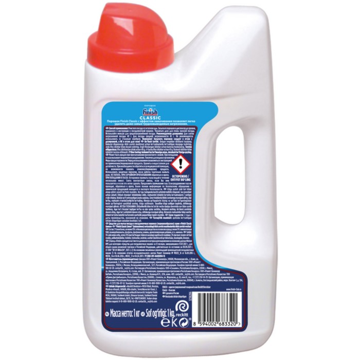 Порошок Finish Classic – удобный формат средства для посудомоечной машины, который позволяет вам самостоятельно дозировать продукт, исходя из степени загрязнения и заполненности вашей посудомойки. Finish Classic с эффектом замачивания позволяет легко удалить даже самые трудновыводимые загрязнения. Экономичное решение для чистоты Вашей посуды. При использовании порошка Finish Classic для достижения максимального результата и при очень жесткой воде рекомендуется применение специальной соли Finish и ополаскивателя Finish.