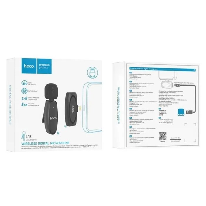 Портативный беспроводной микрофон Hoco L15 — это идеальное решение для тех, кто ищет лёгкий и удобный способ записи звука с высоким качеством на устройства с разъёмом Lightning. Этот микрофон создан для профессионалов и энтузиастов, которые ценят надёжность и простоту в использовании.