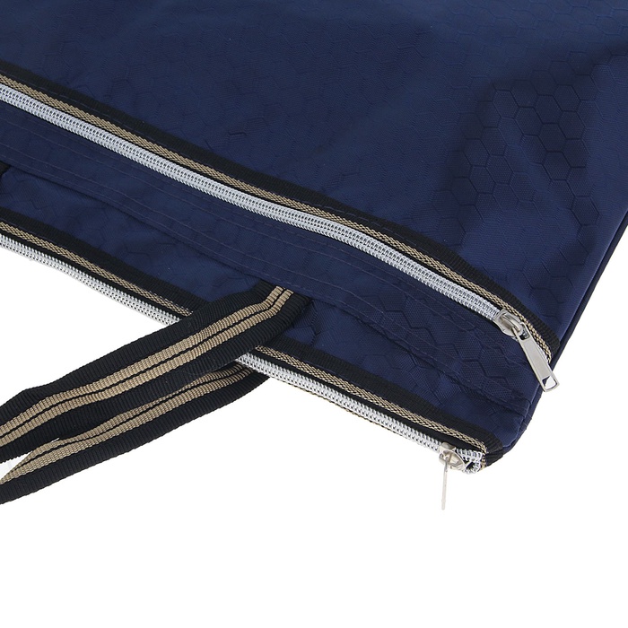 Папка-портфель с карманом для удобной переноски документов изготовлена изнадёжного текстиля синего цвета. Формат А4. Закрывается спомощью молнии, есть ручка. Имеет 1отделение. Состав: металл, текстиль.