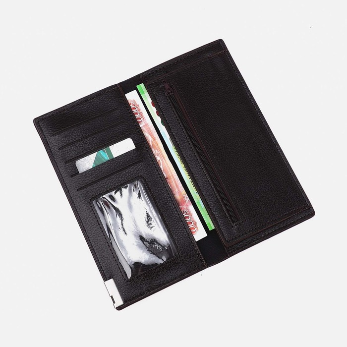Этот мужской кошелек без застежки создан для тех, кто ценит лаконичность и мгновенный доступ к содержимому. Его свободная форма из мягкой искусственной кожи быстро подстраивается под вашу руку, становясь верным спутником в ежедневной деловой рутине.