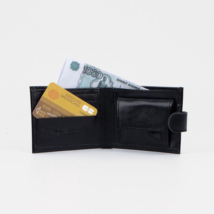 Кошелёк имеет удобные отделы, в которых можно хранить монеты, банковские карты, купюры, что делает его практичным.