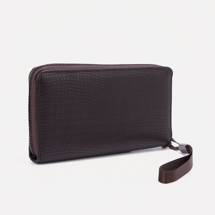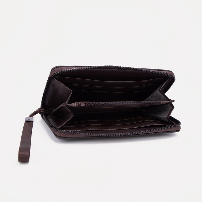 Портмоне мужское на молнии, отдел для купюр, для карт, для монет, цвет коричневый