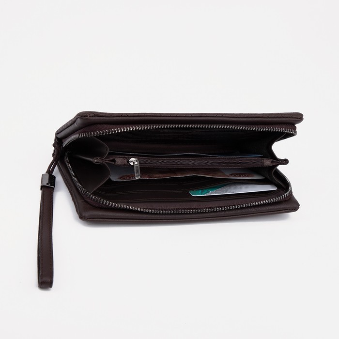 Портмоне мужское на молнии, отдел для купюр, для карт, для монет, цвет коричневый