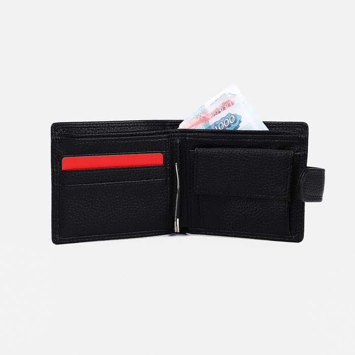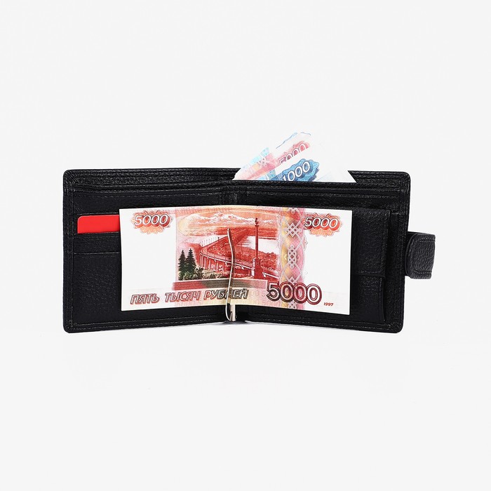 Портмоне на кнопке, отдел для купюр, для карт, для монет, зажим для купюр, цвет чёрный