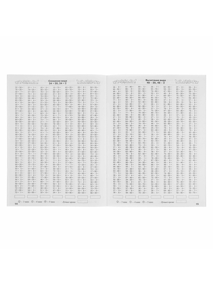 Эта тетрадь напоминает тренировочный лагерь, где каждый пример — это новый шаг к мастерству счёта. Ребёнок словно становится спортсменом, который учится выполнять упражнения всё быстрее и точнее. Это похоже на строительство моста: каждое выполненное задание добавляет прочности конструкции, делая её всё более надёжной.