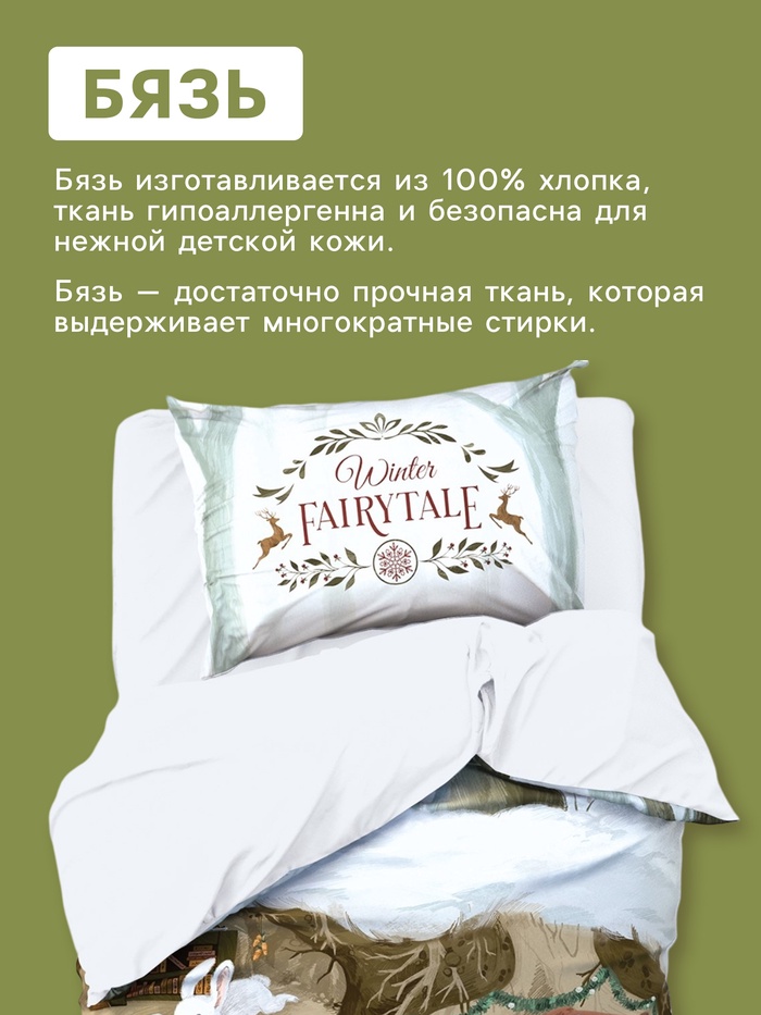 Подарите вашему малышу тепло и уют с нашим детским полутораспальным комплектом "Зимой в берлоге". Мягкая и нежная бязь из 100% хлопка с милым дизайном создаст атмосферу спокойствия и комфорта, обеспечивая вашему ребенку крепкий и здоровый сон.