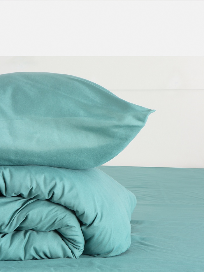 Комплект 1,5-спального постельного белья в цвете малахит — удачный выбор для спальни, где хочется добавить глубину оттенка и сохранить ощущение уюта без перегруженного декора. Однотонное постельное бельё легко вписывается в современный интерьер, хорошо сочетается с базовым текстилем и помогает сделать спальное место более выразительным и аккуратным.
