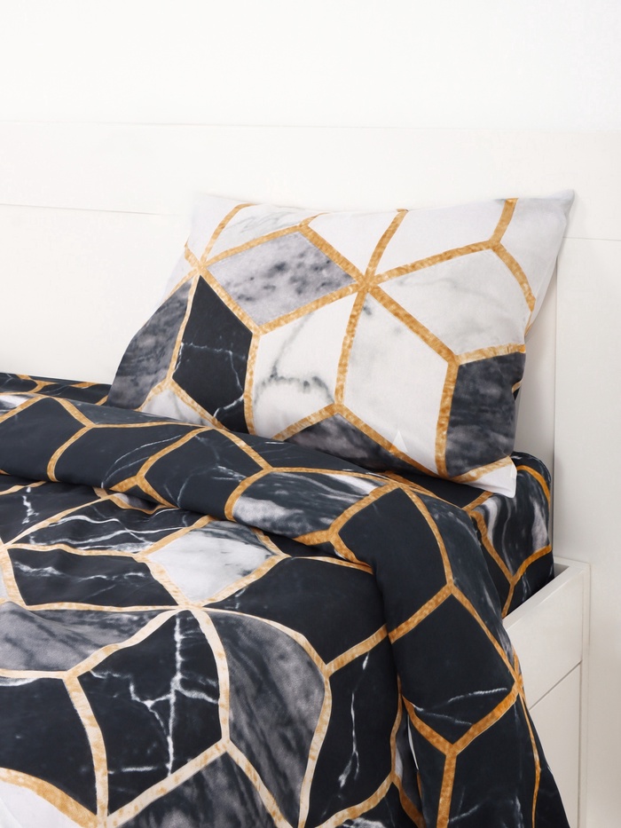 Двухспальный комплект «Экономь и Я» из микрофибры воплощает гармонию между повседневной практичностью и эстетикой. Тёмные тона чёрного и чистота белого создают атмосферу спокойствия, где мраморная тематика добавляет лёгкий акцент изысканности, не отвлекая от главного — отдыха. Микрофибра обеспечивает ощущение мягкости, схожей с шелковистым прикосновением, но с лёгкостью ухода, которая подходит для занятых дней. Этот комплект подходит для семей, где каждый член семьи находит своё место для сна, и для одиночек, ценящих личное пространство. В нём нет места для компромиссов: простыня ложится ровно, наволочки держат форму, а пододеяльник остаётся на месте. Рекомендации по уходу помогают сохранить свежесть на долгие месяцы, позволяя сосредоточиться на важном — на отдыхе и энергии для новых дней.