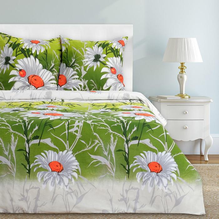 Постельное бельё "Этель" 2 сп. Ромашковое поле 175х215 см, 200х220 см, 70х70 см - 2 шт., 100% хлопок, бязь 125 г/м²