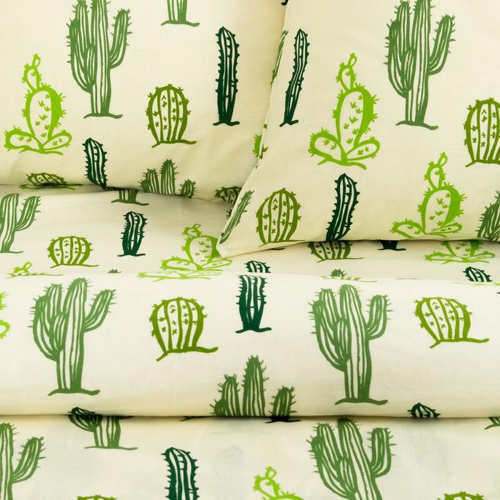 Постельное бельё «Этель» евро Кактусы 200×217 см, 240*220 см, 70×70 см - 2 шт., 100% хл, бязь 125 г/м²