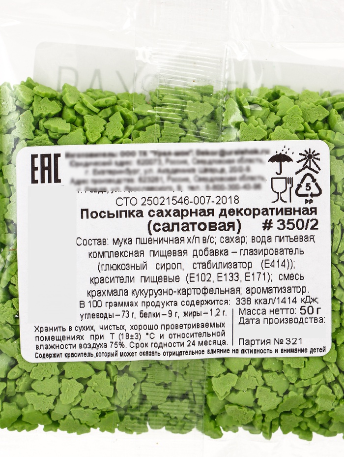 Посыпка кондитерская «Ёлочки», салатовая, новогодняя, 50 г