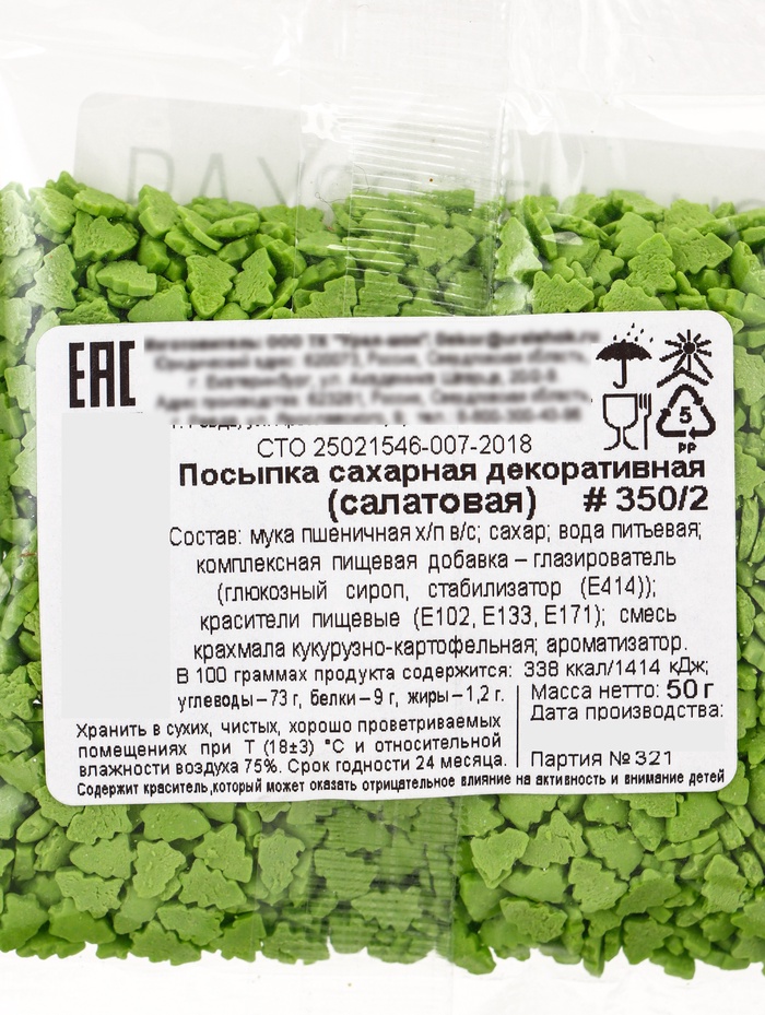 - Вес 50 г позволяет оформить праздничный торт или несколько порций выпечки.