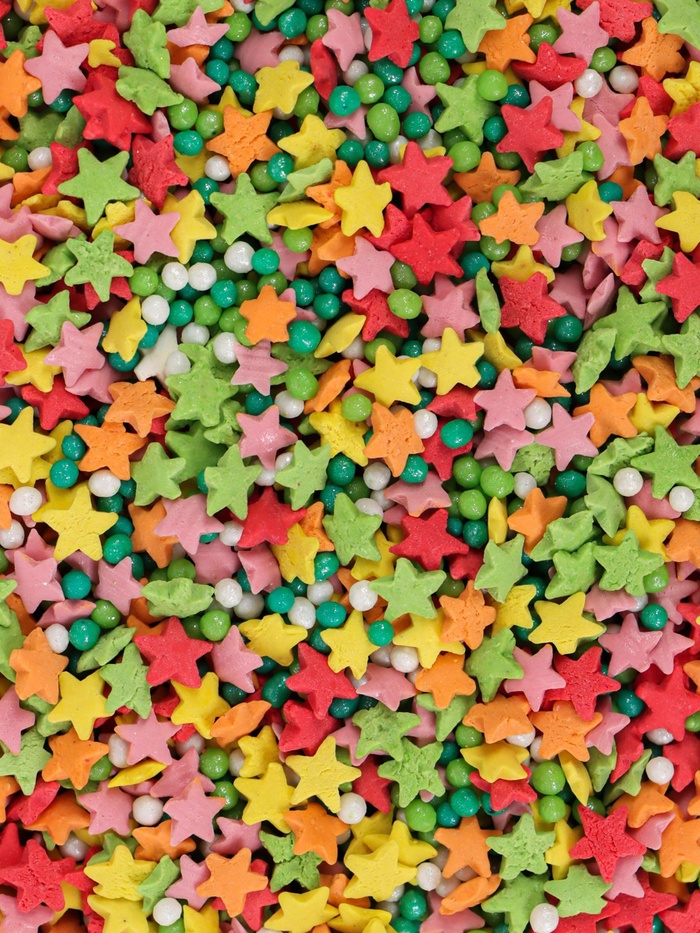 Декоративные цветные звездочки, шары или сердечки - это идеальное съедобное украшение для выпечки, пирожных, десертов и леденцов. Также эта разноцветная посыпка прекрасно подходит для декорирования пасхальных куличей.
