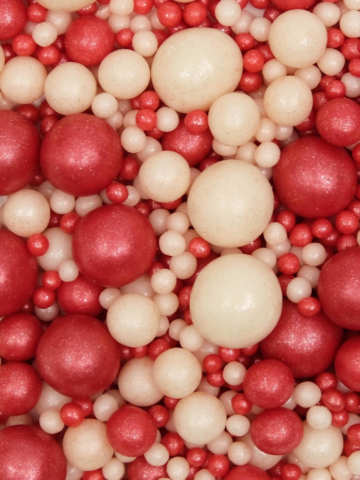 Посыпка кондитерская с мягким центром «Жемчуг»: красный, серебро, 50 г