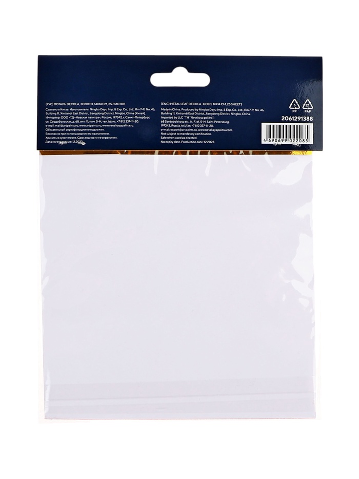 Поталь в книжке для золочения имитация золота №2.5, 14 х 14 см, 25 листов, (плотность 0,03 мкн), ЗХК "Decola", 2061291388
