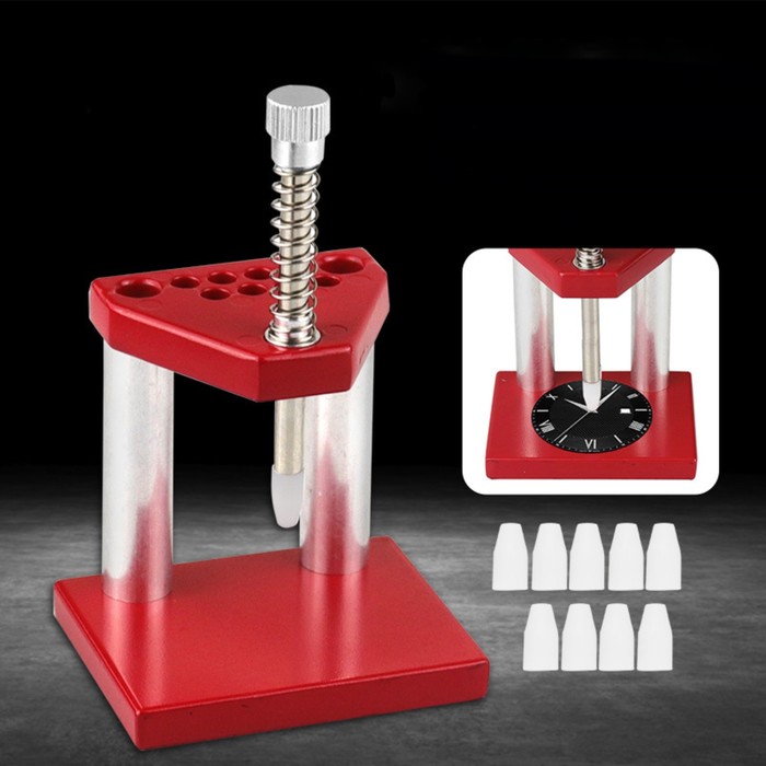 Потанс для установки часовых стрелок - это профессиональный инструмент, предназначенный для точной и безопасной установки стрелок на часах. Он идеально подходит для ремонта и обслуживания наручных часов, гарантирует надежную фиксацию стрелок. Однопозиционный потанс изготовлен из высококачественного материала - алюминия, и весит около 150 граммов. В комплект входят десять резиновых наконечников для установки игл в зависимости от необходимых размеров конкретных часов. Установка стрелок с помощью потанса происходит быстро и легко, без повреждения циферблата и самих стрелок. Центральный плунжер надежно удерживает стрелки на месте, обеспечивая безопасность и точность работы. Потанс для установки часовых стрелок - это незаменимый инструмент для мастеров по ремонту часов и всех, кто занимается обслуживанием и ремонтом часовых механизмов.