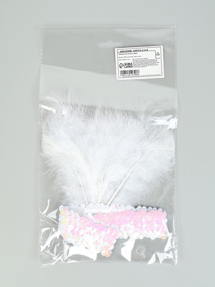 Повязка на голову с пером, цвет белый