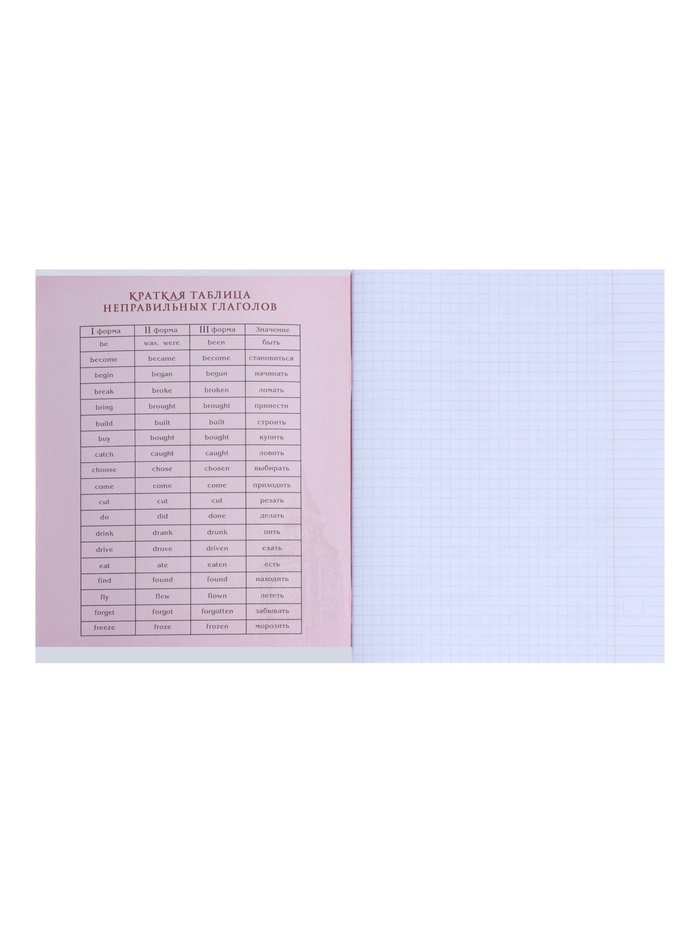 Изучение грамматики и новой лексики проходит эффективнее, когда все материалы организованы в одном месте. Клетчатая разметка этой тетради помогает аккуратно записывать слова и составлять предложения, а справочные таблицы всегда под рукой.