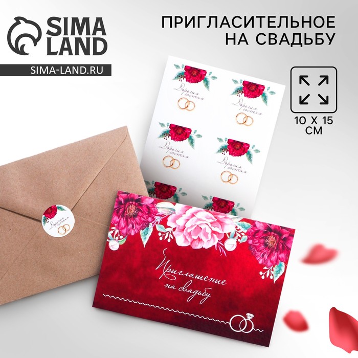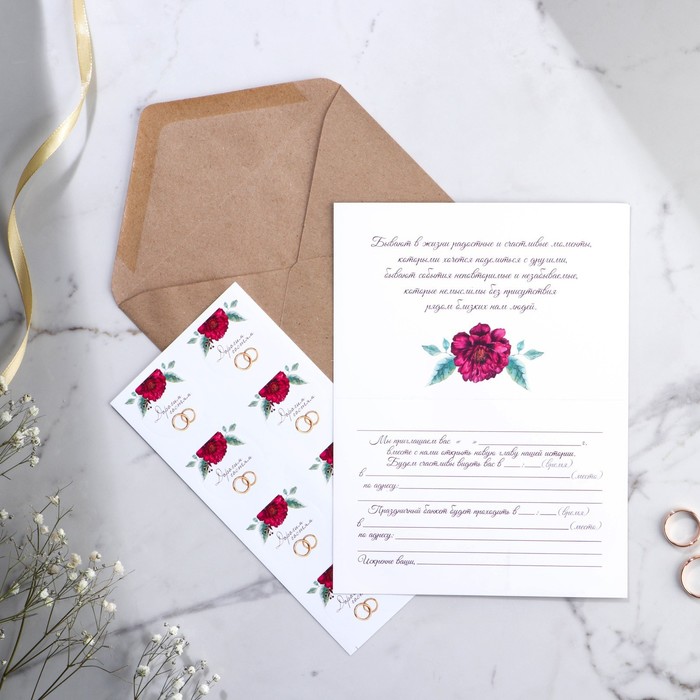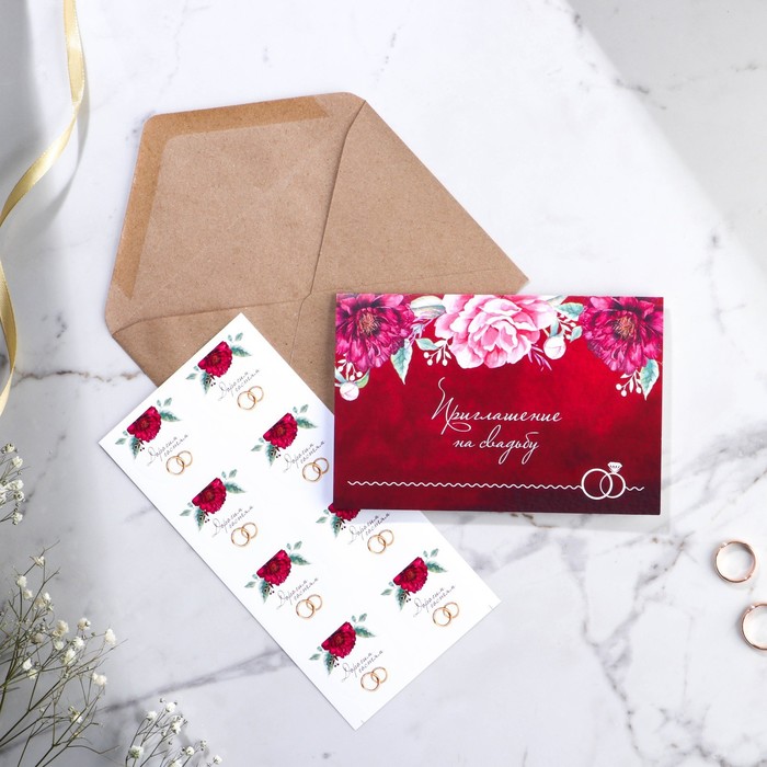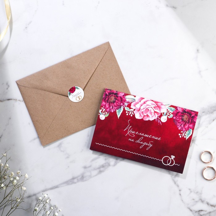 Приглашение на свадьбу в крафтовом конверте «Марсала», 10×15 см