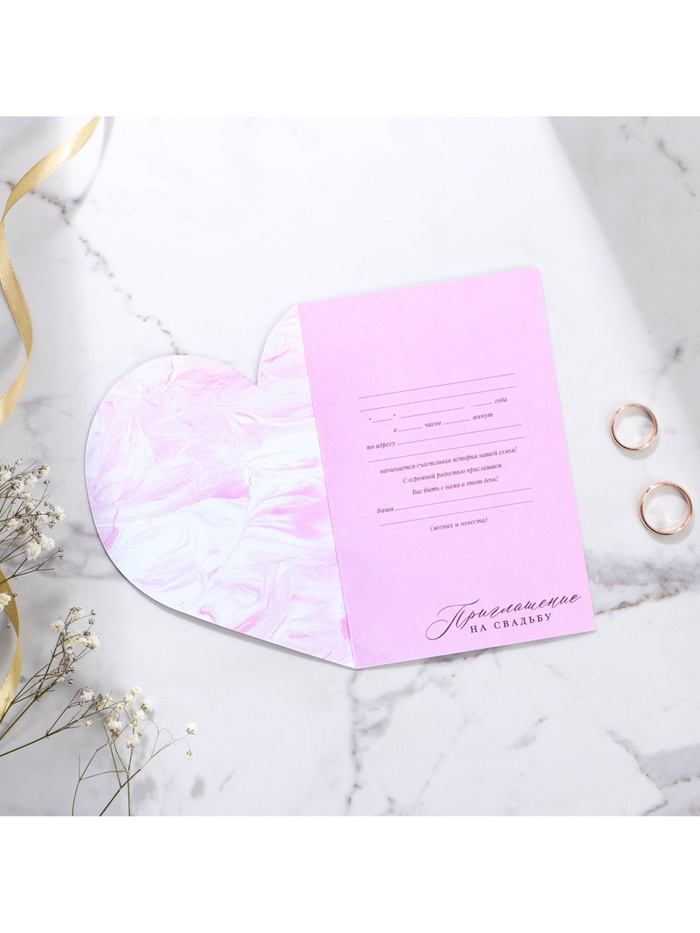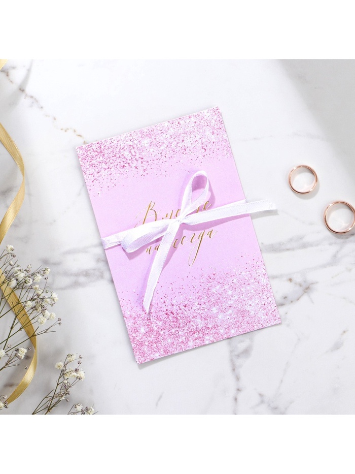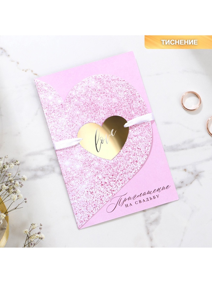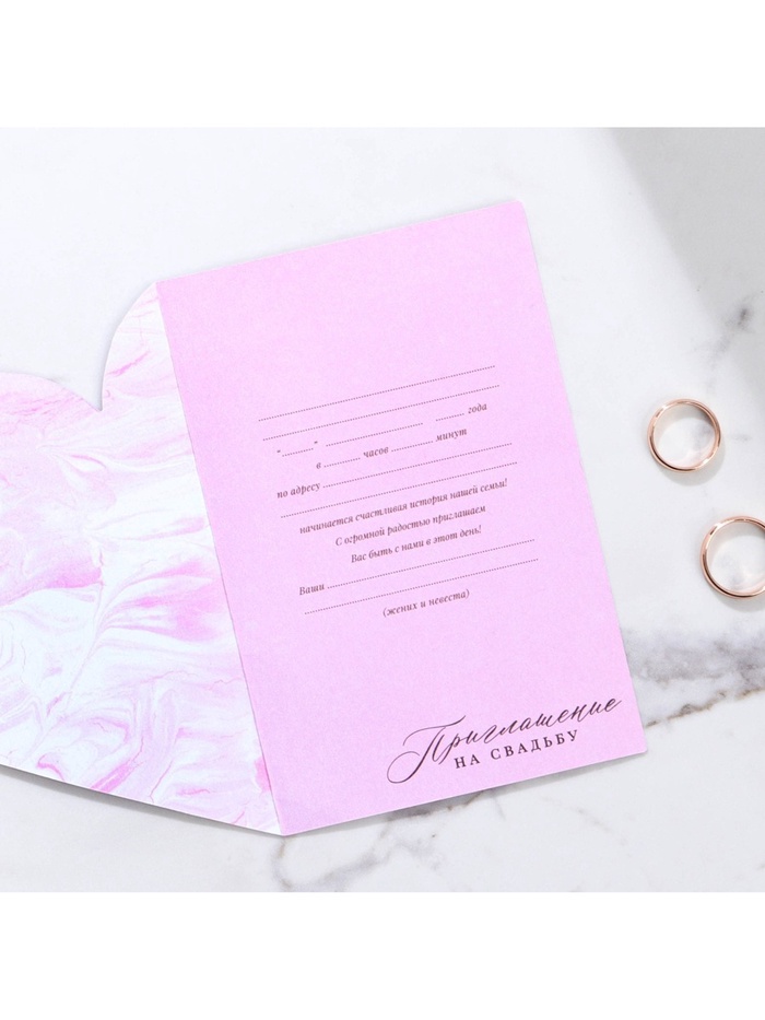 Когда дата и время бракосочетания уже известны, и вы определились со списком гостей, необходимо оповестить их о предстоящем празднике. Существует традиция делать персональные приглашения с указанием времени и даты мероприятия. Но перед свадьбой столько всего надо успеть, что на изготовление десятков открыток просто не остаётся времени. В этом случае вам придёт на помощь уникальное приглашение. Изделие выполнено из бумаги плотностью 300 грамм и дополнено декоративным элементом и тиснением. Это придаёт дорогой и роскошный вид. Текст приглашения содержит свободные поля для имени адресата, времени, даты и адреса проведения мероприятия. Это потрясающее приглашение достойно стать частью такого важного события в жизни, как свадьба!