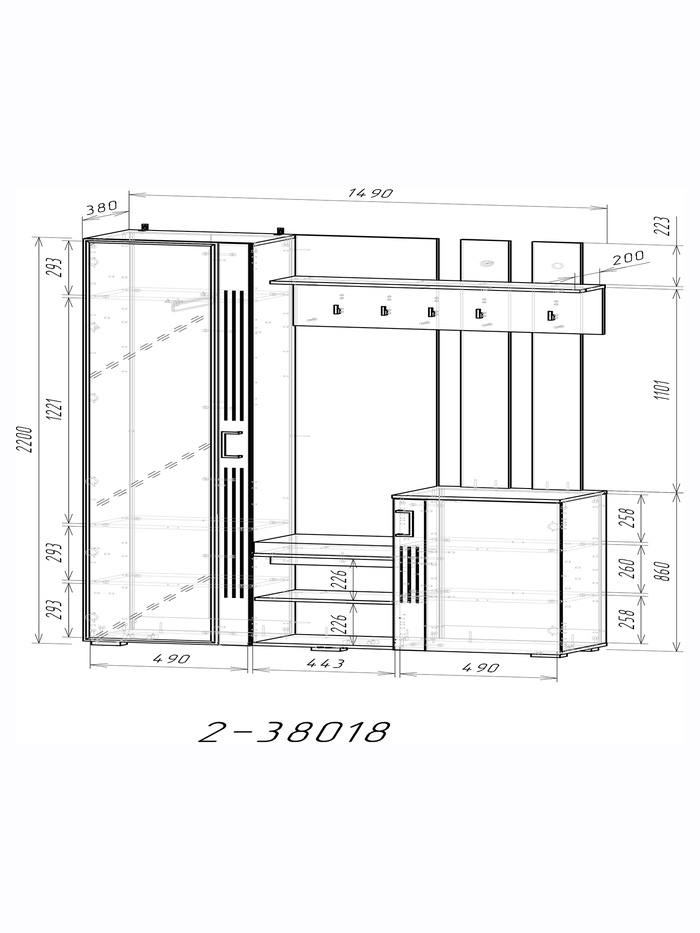 Прихожая «ДУЭТ», 1490×380×2200 мм, цвет графит/дуб крафт табачный/МДФ графит