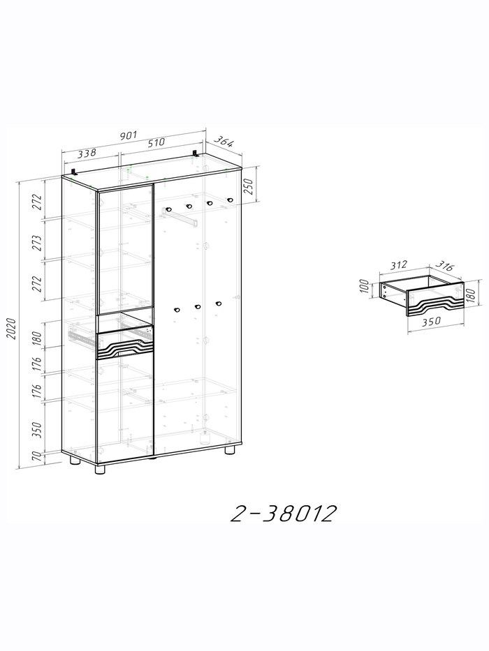 Прихожая «КОМПАКТ», 901×364×2020 мм, цвет графит/белый/МДФ графит