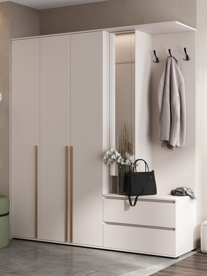 Комплект предметов, предназначенных для обстановки комнаты сразу после входной двери, которая служит как место для хранения верхней одежды и обуви. Включает в себя вешалку с тумбой и шкаф трёхстворчатый.