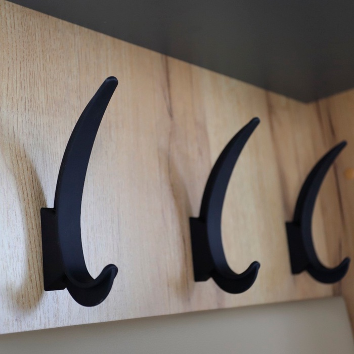 - Крючки: Пластик (черный, матовый) – функциональные детали для верхней одежды.