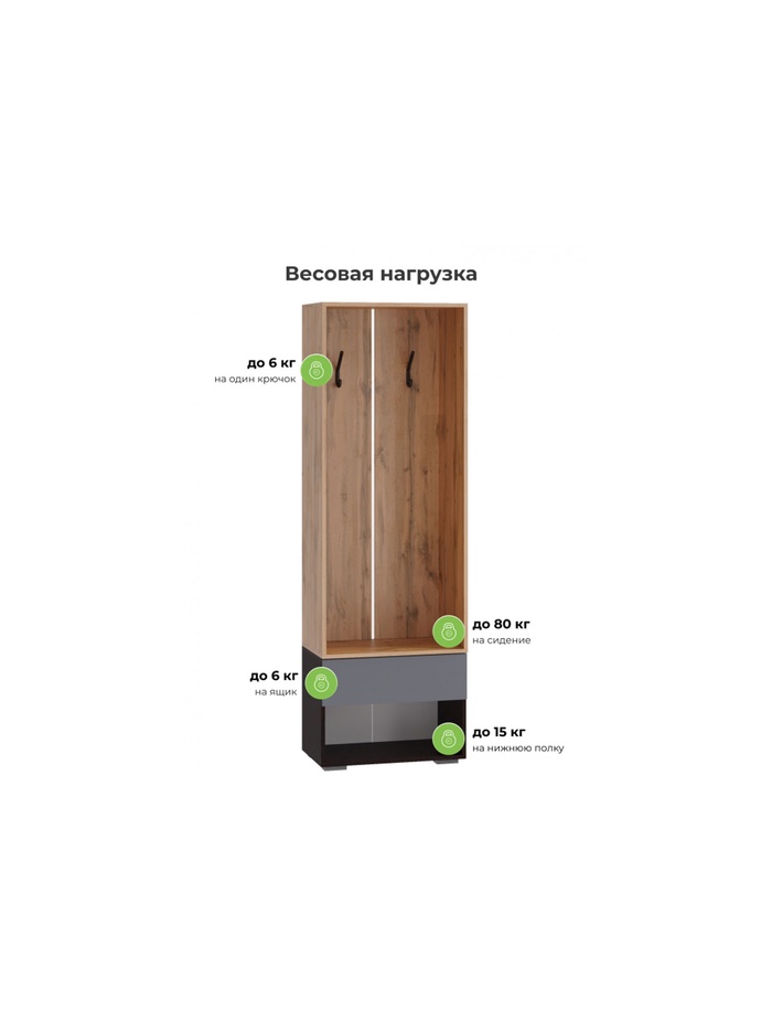 Прихожая Роут 0,6 м венге / дуб вотан / графит софт
