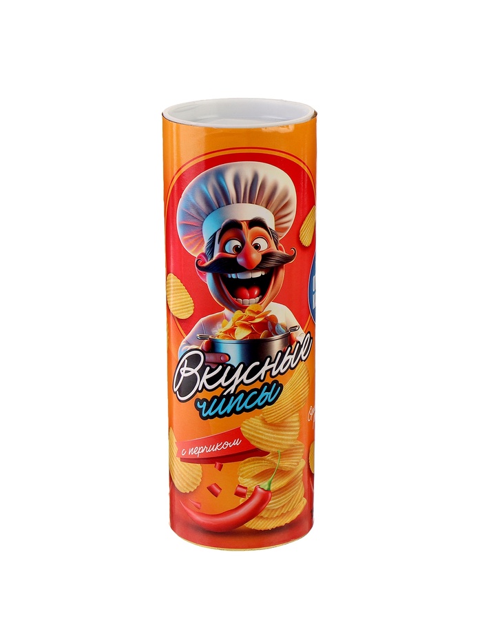 - Игрушка выполнена в виде обычной банки с чипсами, это делает её ещё более правдоподобной.