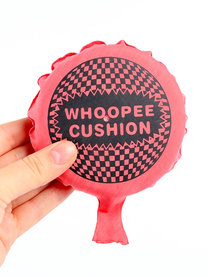 Размер подушки: 11 × 9 × 3 см. Благодаря компактному размеру, подушку легко сделать незаметной для того, кого вы хотите разыграть.