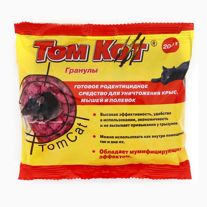 Средство «Том Кот» — это ваш верный помощник в борьбе за спокойствие и чистоту жилого пространства. Защитите свой дом с помощью проверенного решения, которое прекрасно справляется с задачей избавления от грызунов и не требует сложных навыков для использования.