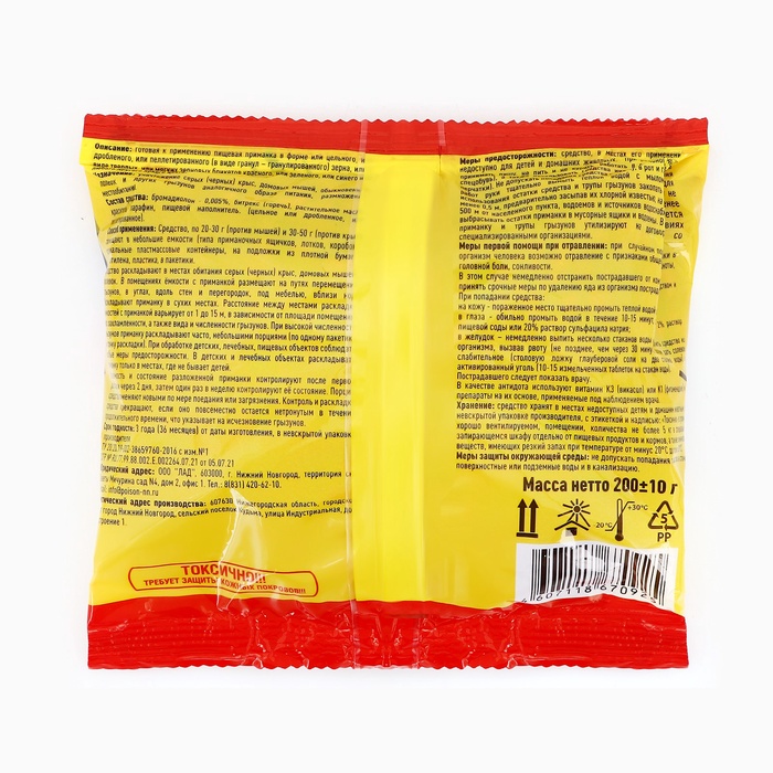 - Эффективность: специальная формула обеспечивает быструю ликвидацию грызунов.