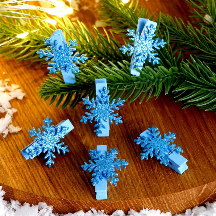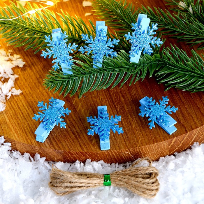 Декоративные прищепки «Снежинки», набор 6 шт., — это не только полезные приспособления в хозяйстве, но также элементы оформления интерьера, цветочных композиций, декорирования подарков, открыток и многого другого.