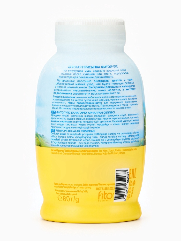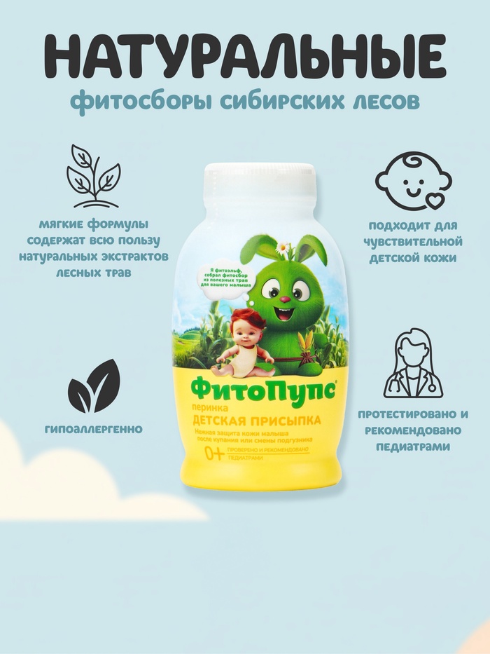 Детская присыпка Фитопупс из кукурузной муки надежно защищает кожу малыша после купания или смены подгузника, предотвращая появление дискомфорта.