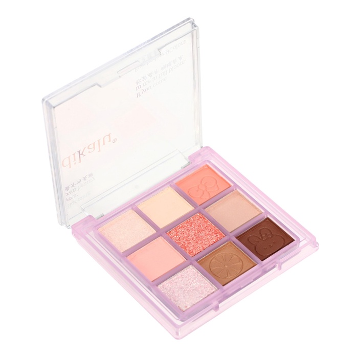 Палетка теней имеет удобную форму и хороший выбор цветов, в том числе блестящих. Тени хорошо пигментированы, не пылят, не скатываются, отлично тушуются и наносятся на веки.